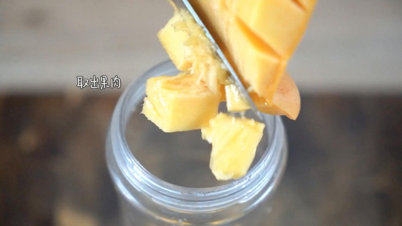 1.芒果切丁,倒入破壁機